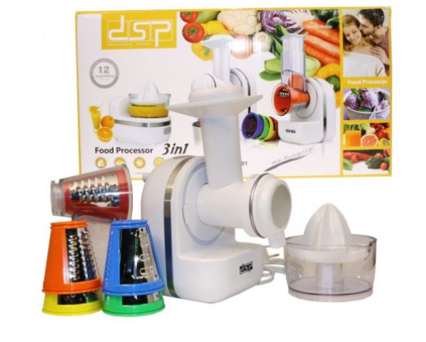 - Заменит целый набор кухонных предметов и приборов: терка/измельчитель, шинковка, соковыжималка, десертница