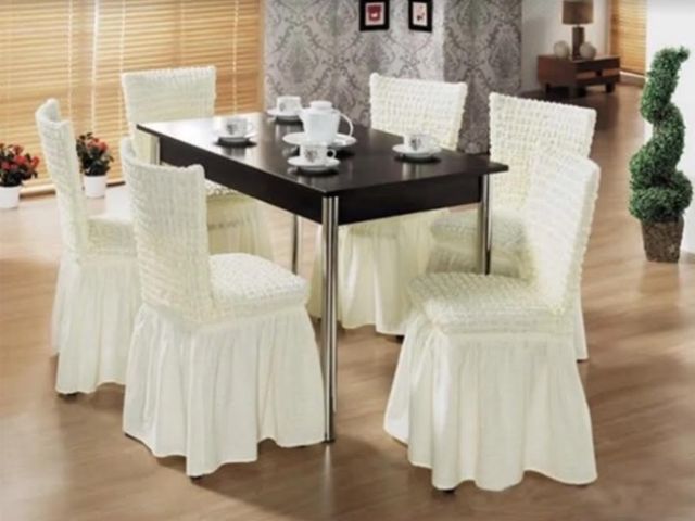 Комплект состоит из 4 чехлов для стульев (высота спинки от посадочного места 50+30 см; длина посадочных мест 35+30 см; ширина посадочных мест 35+30 см; ширина спинки 35+30 см).Плотность : 360 гр/м2