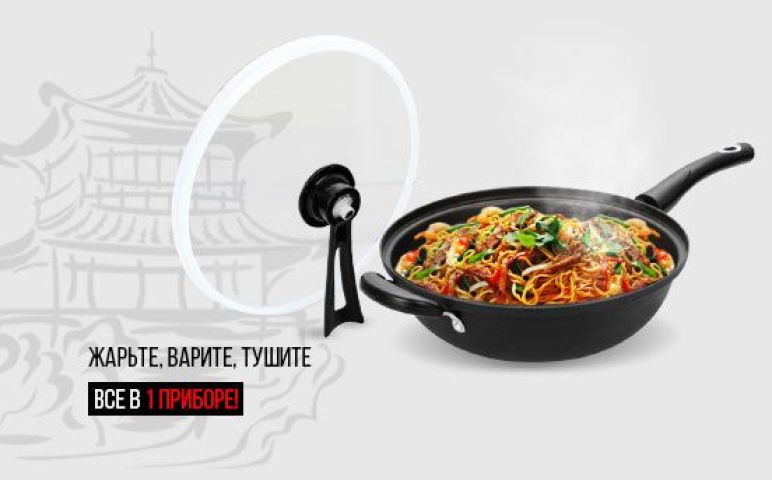 Сковорода ВОК– это традиционная китайская сковорода с круглым дном. В настоящее время такие сковороды очень широко распространены в Восточной и Юго-Восточной Азии. Но постепенно входят и наш обиход. Их часто можно встретить на кухнях современных хозяек. Прочем, это не значит вовсе, что в этом доме собрались страстные поклонники китайской кухни. ВОК– это очень удобная сковорода, которую можно легко адаптировать и для нашей, кухни.