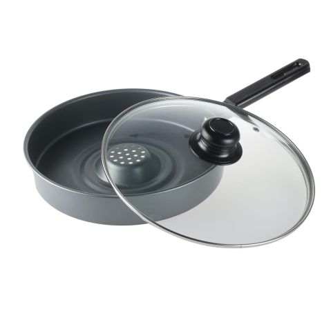 Керамическая сковорода со съемной бакелитовой ручкой идеально подходит для тушения. Это способ приготовления блюд, в котором сочетаются элементы варки и обжаривания.