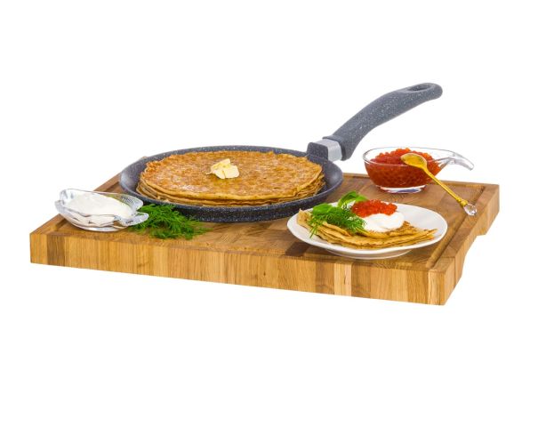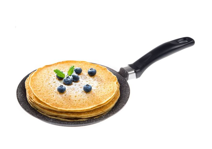 В любом крепком хозяйстве на кухне должна быть специальная блинная сковорода с низкими бортиками. Благодаря равномерному распределению тепла по дну сковороды и современному мраморному покрытию, блинное тесто не пригорает и отлично подрумянивается по всей поверхности – в итоге блинчики получаются удивительно вкусными и тонкими. Они быстро жарятся, их легко переворачивать и снимать.
