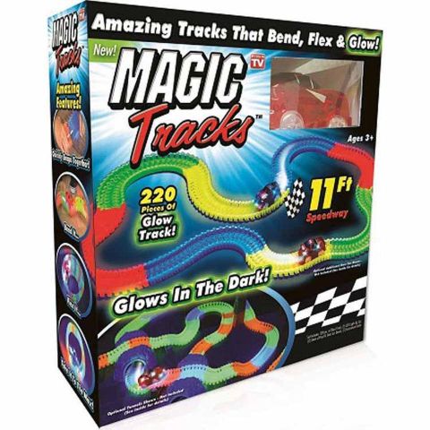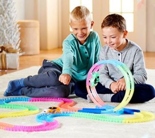 Сердца малышей завоевывает новая игра – светящаяся трасса Magic tracks. Это гоночный трек последнего поколения, который завораживает пользователей невероятной гибкой формой и светящимся дорожным полотном. Благодаря пластичным соединительным элементам автотреку можно придавать любую форму – с мягкими или крутыми поворотами вплоть до 360 градусов, создавать для машинок препятствия и менять маршруты уже в ходе движения.