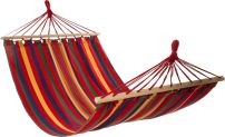 гамак имеет компактные размеры в сложенном виде и его легко можно натянуть на даче, на лужайке загородного дома или даже взять с собой на отдых у моря
