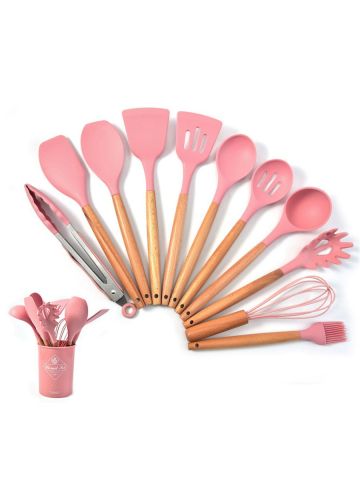 Набор силиконовых кухонных принадлежностей из 12 (розовый)