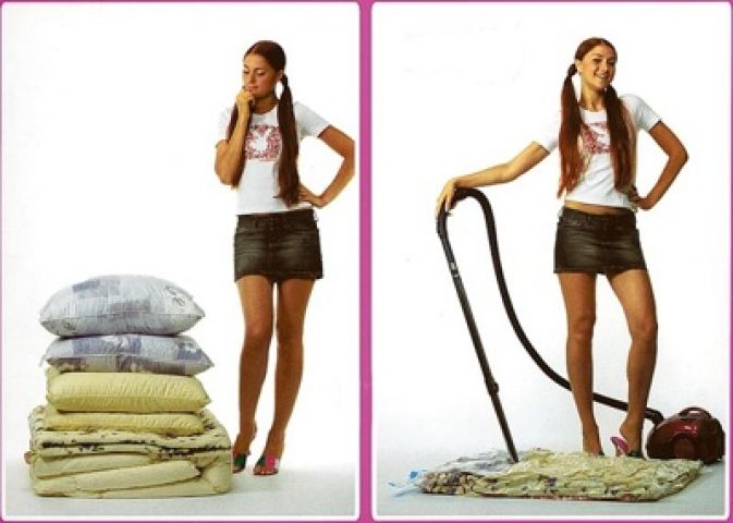 Вакуумные пакеты помогут увеличить жизненное пространство благодаря их главному достоинству: из-за герметичности упаковки вещи, сложенные в пакет, плотно сжимаются и их объем уменьшается до 75%.