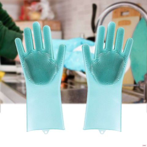 Просто оденьте перчатки на ваши руки и гора грязной посуды тает за считанные секунды.