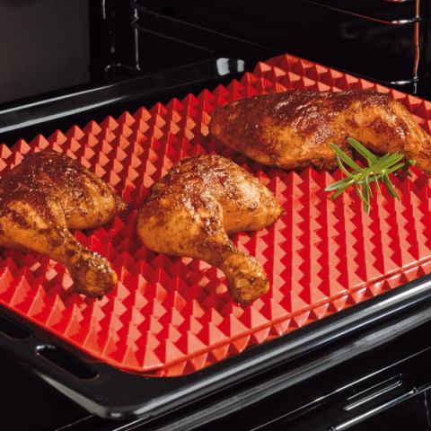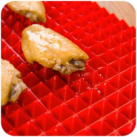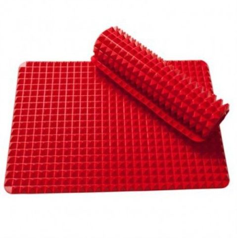 Теперь для того, чтобы избавиться от всех вредных компонентов и веществ в продуктах не нужно тратить много времени и усилий на дополнительные обработки. Силиконовый коврик Пирамид Пан сможет полностью обезопасить пищу от жира и вредных веществ, сохраняя природные вкусовые качества продуктов, насыщая при этом организм только полезными элементами.