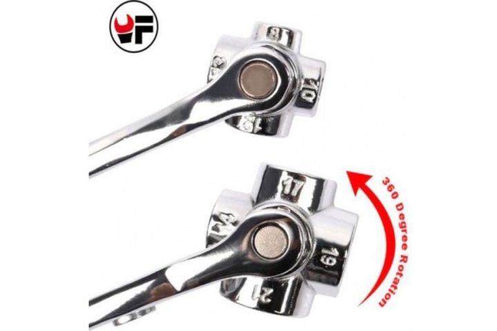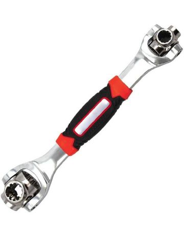 Многофункциональный торцевой ключ TIGER WRENCH заменит вам 48 отдельных инструментов, и подходит для различного рода работ. Вам больше не нужно иметь при себе несколько торцевых ключей или большие наборы инструментов, просто поверните голову ключа, чтобы найти нужную форму и переключиться между другими размерами. Уникальный дизайн зубцов позволяет вам делать как стандартные, так и метрические размеры - просто поворачивайте инструмент вокруг.