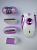 *насадка для эпиляции с массажным колпачком, триммер (подстригает волосы до длины 5 мм, оптимальной для процедуры эпиляции), насадка для бритья (можно подровнять линию роста волос в зоне бикини) с защитным колпачком, щеточка для чистки насадок.