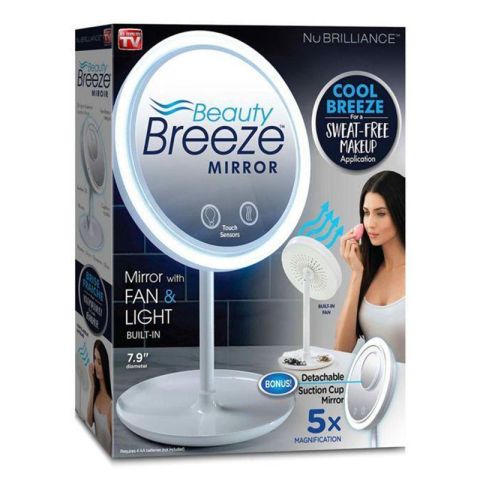 Косметическое зеркало «Brise Fraiche LED» имеет крайне удобную, устойчивую стойку, ножка которая выполняет функцию подставки; встроенную кольцевую LED – лампу, позволяющую дать максимально правильное освещение в процессе; оснащена вентилятором, благодаря которому неприятные последствия чистки лица или депиляции, в виде покалывания, жжения, покраснения после процедур, становятся неощутимыми. Бонусом к настольному косметическому зеркалу идет небольшое зеркало с 5-тикратным увеличением на магнитном креплении, которое позволяет разглядеть мельчайшие детали и успешно провести микроскопические воздействия в ходе процедур.